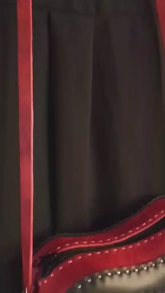 Designed with a vibrant red strap for comfortable wear, this bag is as functional as it is fashionable. Whether you're looking to stand out at a party, add an unconventional edge to your everyday outfit, or gift something unforgettable, this handbag is the perfect accessory for fearless personalities.